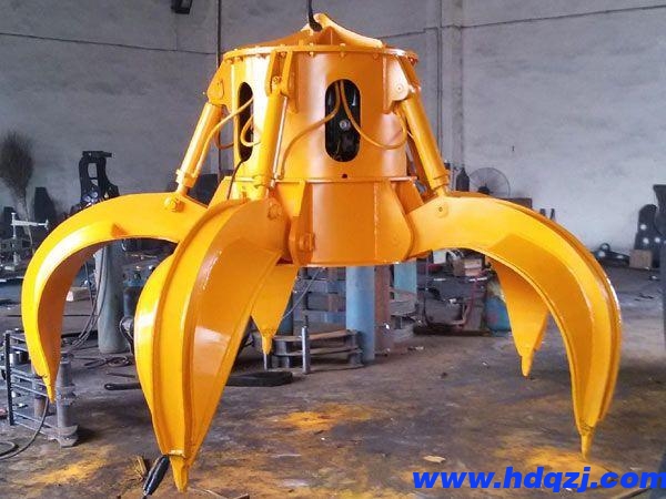 電動(dòng)液壓抓斗的原理是將電能,通過(guò)液壓系統(tǒng)來(lái)作功,實(shí)現(xiàn)抓斗的開(kāi)閉,達(dá)到裝卸貨物的目的。